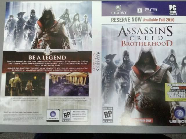 Brotherhood al parecer será aquel juego que será la continuación del segundo videojuego de la serie pero OJO, no es un Assasin’s Creed 3 como muchos piensan. En la imagen donde al parecer es la parte trasera de la caja del juego dice que los jugadores podrán: