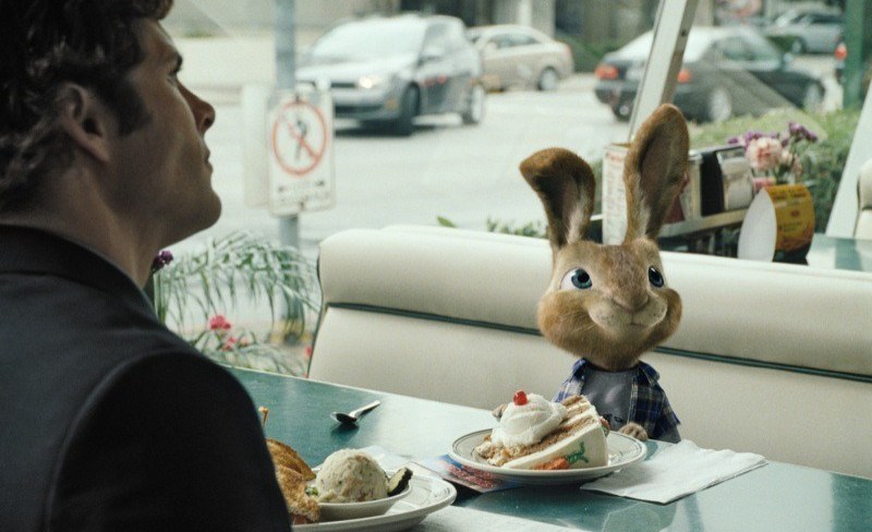 Una vez en el mundo “humano” se ve al joven conejo luchando por encontrar un hogar, después de unos pequeños tropiezos en la Mansión Playboy, EB se encuentra casualmente con Fred en un accidente cuando este lo arrolla con su auto, luego del chantaje emocional que le proyecta el conejo Fred termina invitándolo a la casa que este cuida por encargo de su hermana Samantha (Kaley Cuoco).