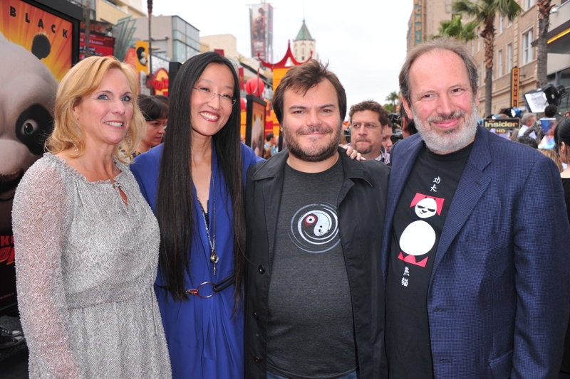 HOLLYWOOD, CA – MAY 22: (L-R) Producer Melissa Cobb, director Jennifer Yuh Nelson, actor Jack Black and Hans Zimmer arrive at DreamWorks Animation’s «Kung Fu Panda 2» Los Angeles Premiere held at Grauman’s Chinese Theatre on May 22, 2011 in Hollywood, California. (Photo by Alberto E. Rodriguez/Getty Images)