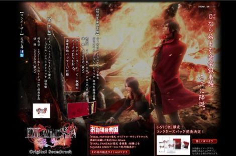 Ha se ha liberado el sitio para la preventa del Soundtrack de Final Fantasy Tipo-0, el soundtrack estará disponible en dos versiones ambas serán lanzadas el 12 de Octubre, la Edicion Limitada incluye una caja especial y un DVD con películas esta versión tiene un precio de 3800 yenes, la versión estándar solo es el disco y tendrá un precio de 3300 yenes.