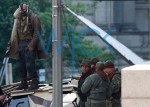 Hoy una de las principales escenas de The Dark Knight Rises se esta filmando en Pittsburgh y desde ya viene saliendo a luz fotos del set donde podemos ver a Tom Hardy en el rol de Bane, subiremos un video tan pronto se revele de esta etapa de la película, ve las fotos mientras después del salto.