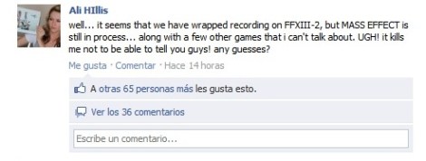 El día de ayer la actriz Ali Hillis quien presta su voz a Lightning en FFXIII-2 confirmaba a través de su cuenta de Facebook que las sesiones de doblaje habían llegado a su fin y que las de Mass Effect 3 estaban aun en curso.