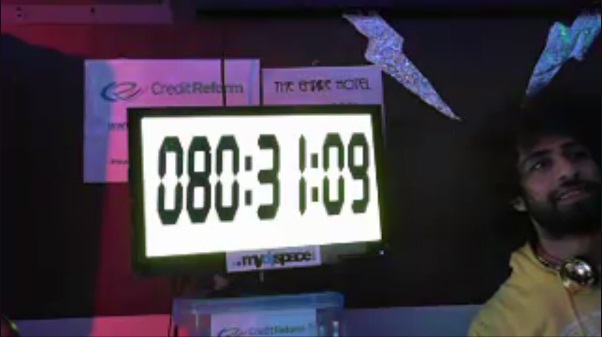 Según su web empezó el viernes 16 de diciembre y, según el reloj que le acompaña, ahora mismo lleva 80 horas tocando musica. Pero como todo récord tiene sus reglas: