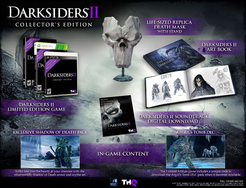 THQ lanza un comunicado en el cual detalla la edición de coleccionista que tendrá Darksiders II y que tenemos gracias a Joystiq, el juego estará disponible para box 360, Playstation 3 y PC, todas ellas contaran con dicha edición.