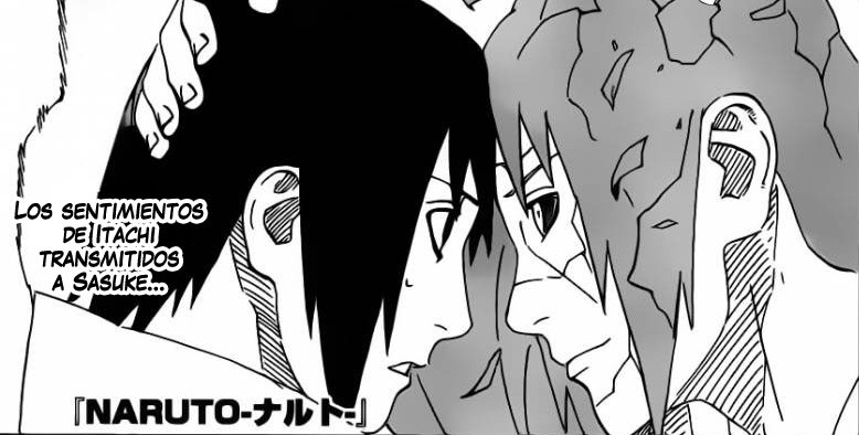 Itachi logra deshacer el Edo Tensei y ahora esta diciéndole sus ultima palabras a su hermano menor (Sasuke), mientras tanto en los diferentes campos de batalla están desapareciendo los ninjas que fueren revividos, pero Madara parece no desaparecer, ¿qué significa esto?, ve el manga después del salto.