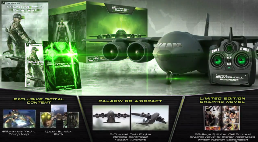 Esta edición contendrá una copia del juego, además de un tomo de la novela gráfica Splinter Cell Echoes con 88 páginas, un póster, el mapa para el modo cooperativo Billionaire’s Yacht, además contiene el Upper Echelon Pack que incluye el Dead Coast que es un mapa cooperativo y los Gold Sonar Goggles así como el traje Upper Echelon.