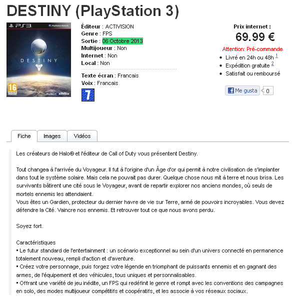 destiny 3 Publicado 15 febrero, 2013 en 588 × 606 en Destiny | De acuerdo a una tienda francesa el juego llegará en octubre ← Anterior