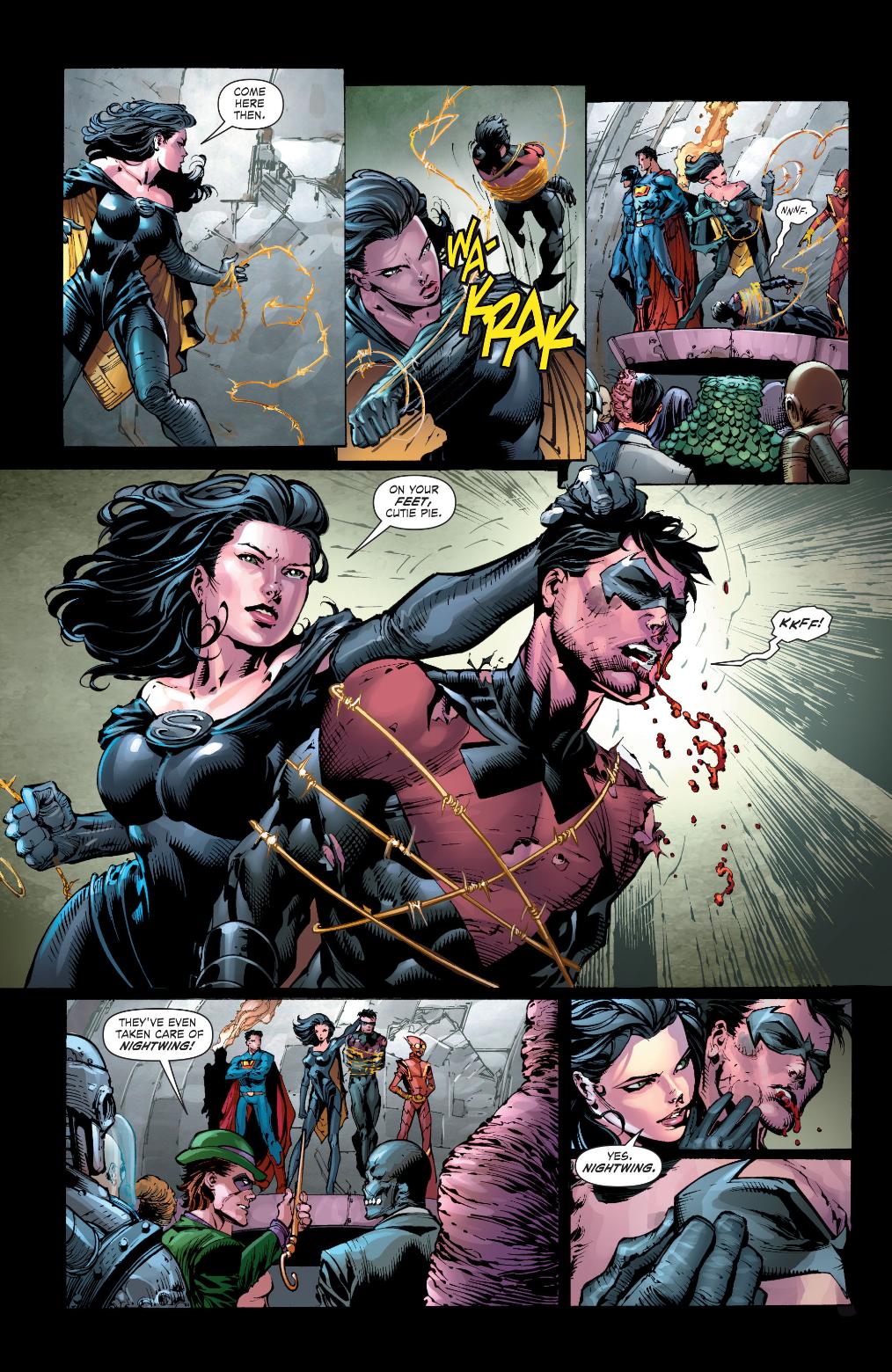 Bien, como verán en la siguientes paginas que son el preview a Forever Evil #1, el Sindicato del Crimen revela a sociedad secreta y al mundo la identidad de Nightwing. Esto tendrá seguro muchas consecuencias tanto para Dick Grayson y el mundo de Batman. Con los villanos de Tierra 3 teniendo ahora el control y afirmando que han matado a la Liga de la Justicia solo queda ver lo que veremos en estas paginas y si es de verdad rescatable para un evento de un universo completamente reiniciado. ¿Qué te ha parecido todo esto?