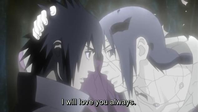 La batalla entre Itachi y Sasuke contra Kabuto ha terminado ahora es tiempo de retirar el Edo Tensei de esta guerra, pero antes de eso Itachi explica el poder del Izanami y se depide de su pequeño hermano menor, mientras tanto continua la batalla entre los 5 Kages contra Madara.