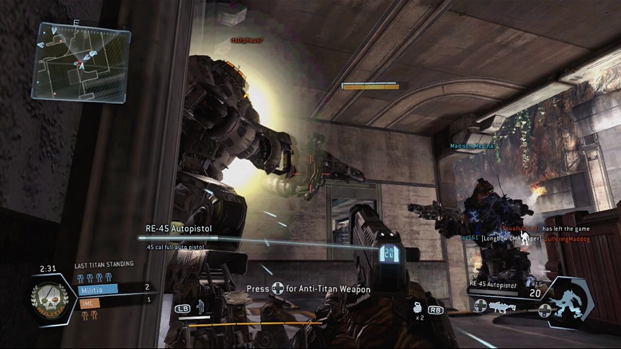 Pasillos estrechos y acantilados proporcionan cobertura de tus enemigos pero no de los que tienen escopetas o pistolas de auto orientación, los pilotos se mueven con total facilidad a través de los mapas grandes, saltando en paneles expuestos, pudiendo llegar a los tejados o torres donde francotiradores se ponen para arruinarnos el día. De los mejores momentos del juego vienen con las interacciones entre los pilotos y los titanes, partida tras partida el juego logro una acción fresca para el genero.