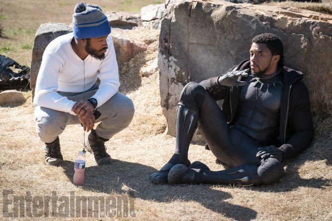 MLD-17462_R.JPG Publicado 12 julio, 2017 en 669 × 446 en Black Panther | Vean las nuevas imagenes de la película. ← Anterior Siguiente → Marvel Studios’ BLACK PANTHER L to R: Director Ryan Coogler and Chadwick Boseman (T’Challa/Black Panther) on set Credit: Matt Kennedy/©Marvel Studios 2018