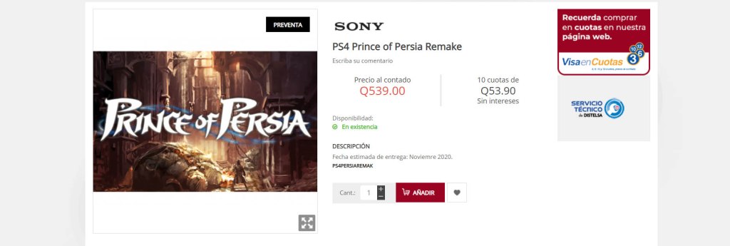 El día de hoy, según un supuesto error de la tienda MAX en Guatemala, se ha enlistado antes de lo previsto el anuncio de un remake de Prince of Persia para las consolas PlayStation 4 y Nintendo Switch, el cual estaría disponible en el mes de noviembre de este año. Sin embargo, hasta el momento Ubisoft no ha confirmado nada al respecto.