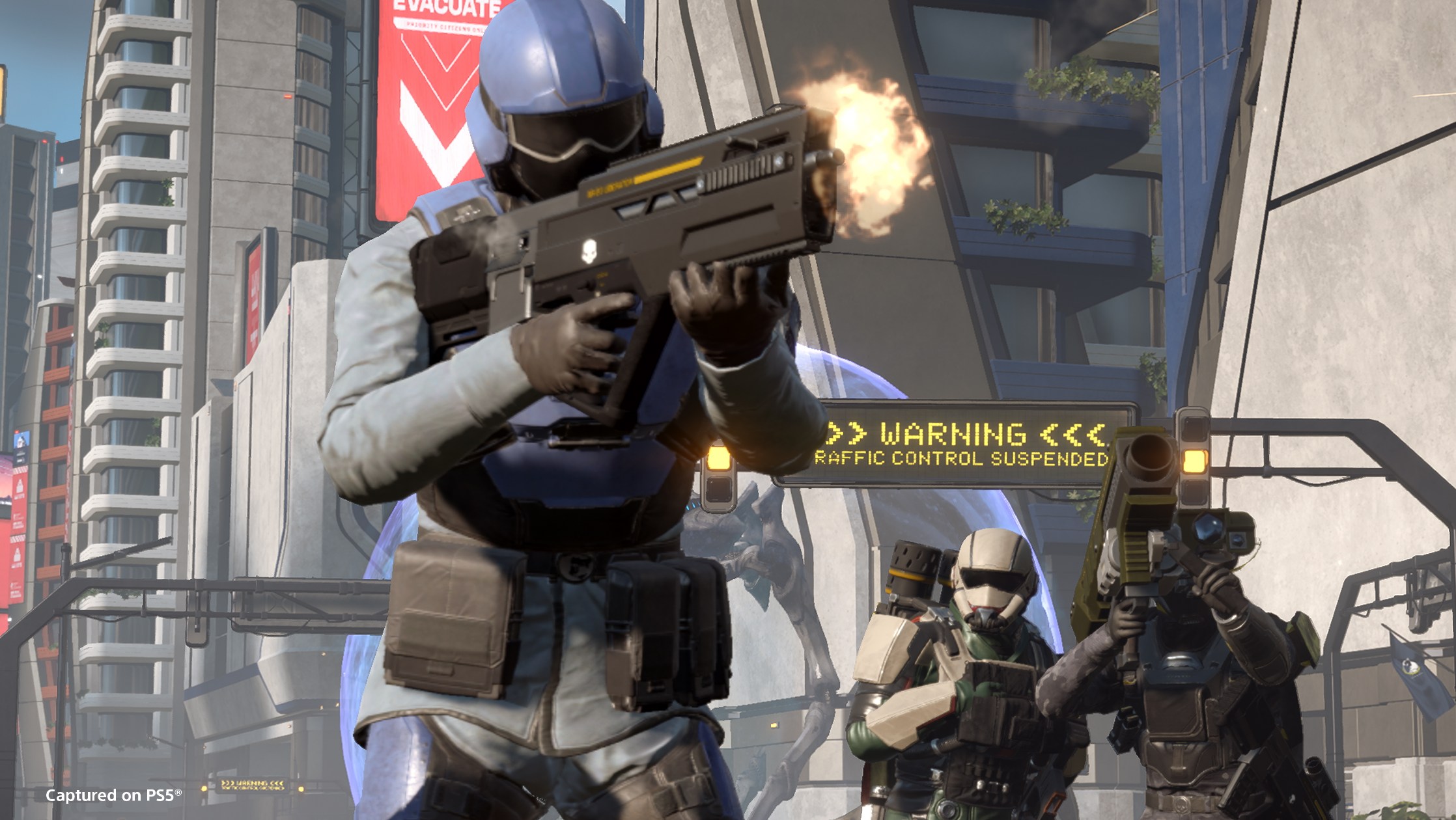 Repele la invasión Illuminate: Los enemigos han roto las defensas y están cayendo sobre Super Earth en oleadas devastadoras. La flota Illuminate aterriza en zonas estratégicas y arrasa con todo a su paso. Tu misión como Helldiver es clara: recuperar el control, calle por calle, bloque por bloque. Cada zona recuperada representa una oportunidad para contraatacar, reagruparse y salvar vidas. El terreno urbano es ahora el nuevo frente… y cada centímetro cuenta…