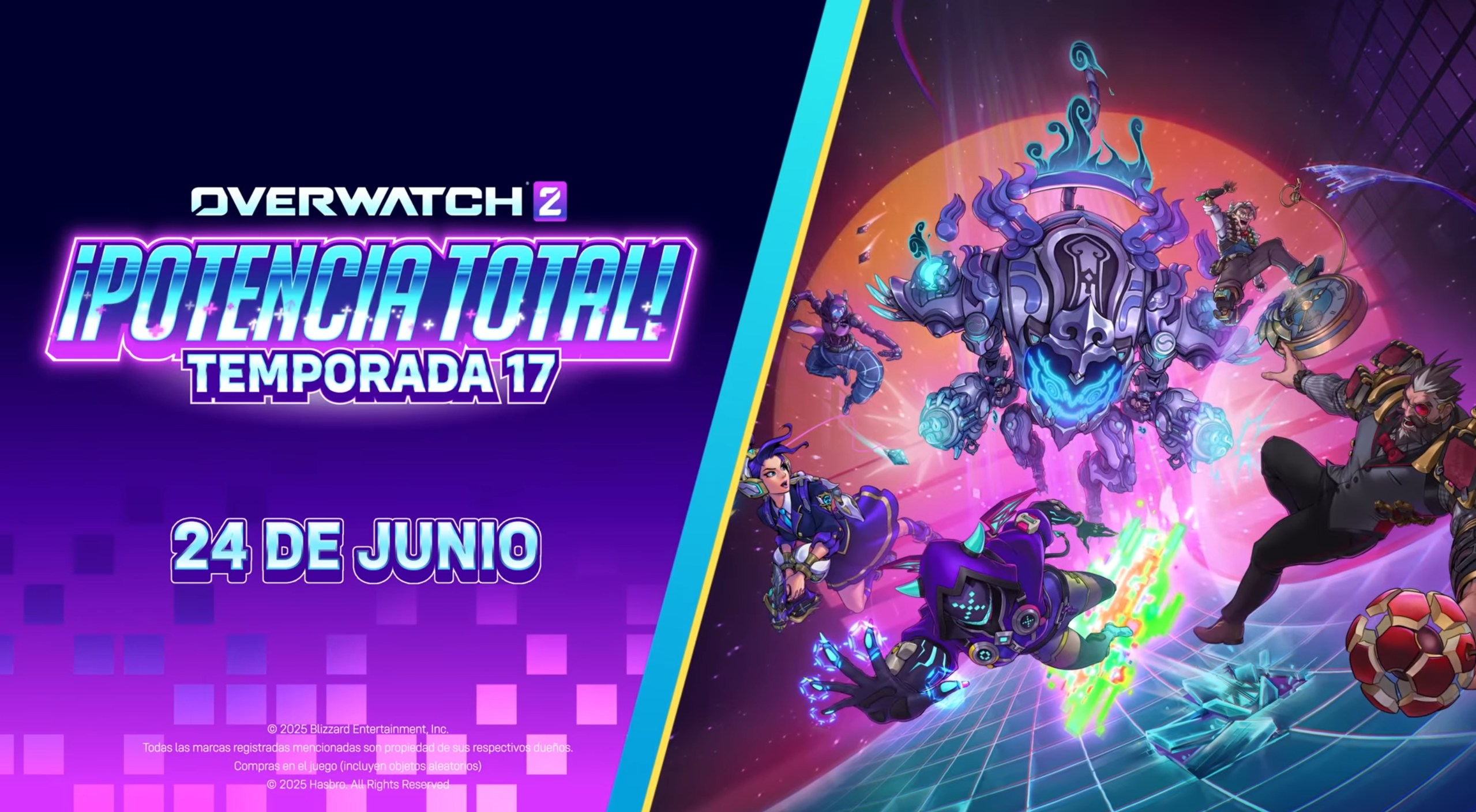 La temporada 17 comienza con recompensas preliminares: ¡el evento Potencia total del 24 al 30 de junio! Completa 17 partidas en Partida rápida, Juego competitivo o Estadio y gana 4 cajas de botín épicas con un diseño legendario garantizado en la última. El progreso se cuenta en Partida rápida, Juego competitivo y Estadio, pero no en partidas personalizadas, Maestría de héroes o Practicar contra IA.