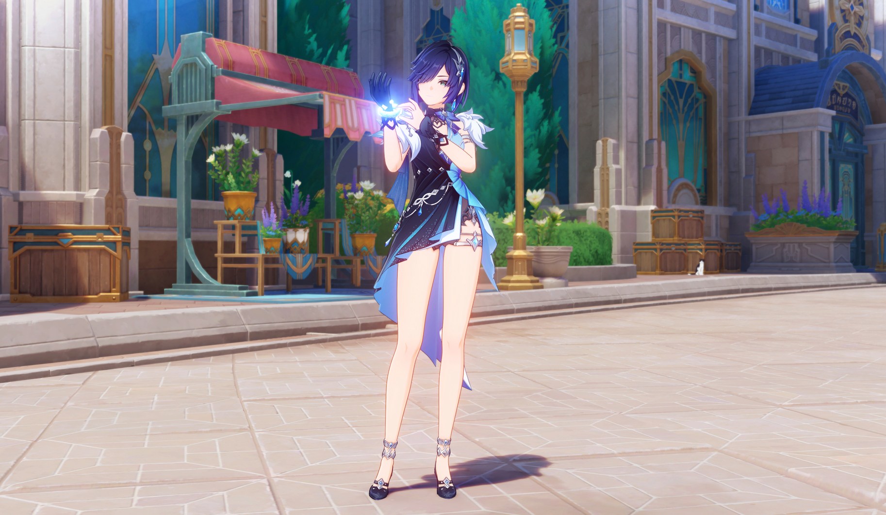 Además, Yelan, nuestra vieja amiga de Liyue, envuelta en un complicado caso en Fontaine, mantiene un perfil bajo vistiendo un nuevo vestuario al estilo de Fontaine y se equipa con un dispositivo especial para captar rastros invisibles a simple vista. Por tiempo limitado, los viajeros también podrán obtener el nuevo vestuario de Yelan «Convite sereno» con un descuento especial.